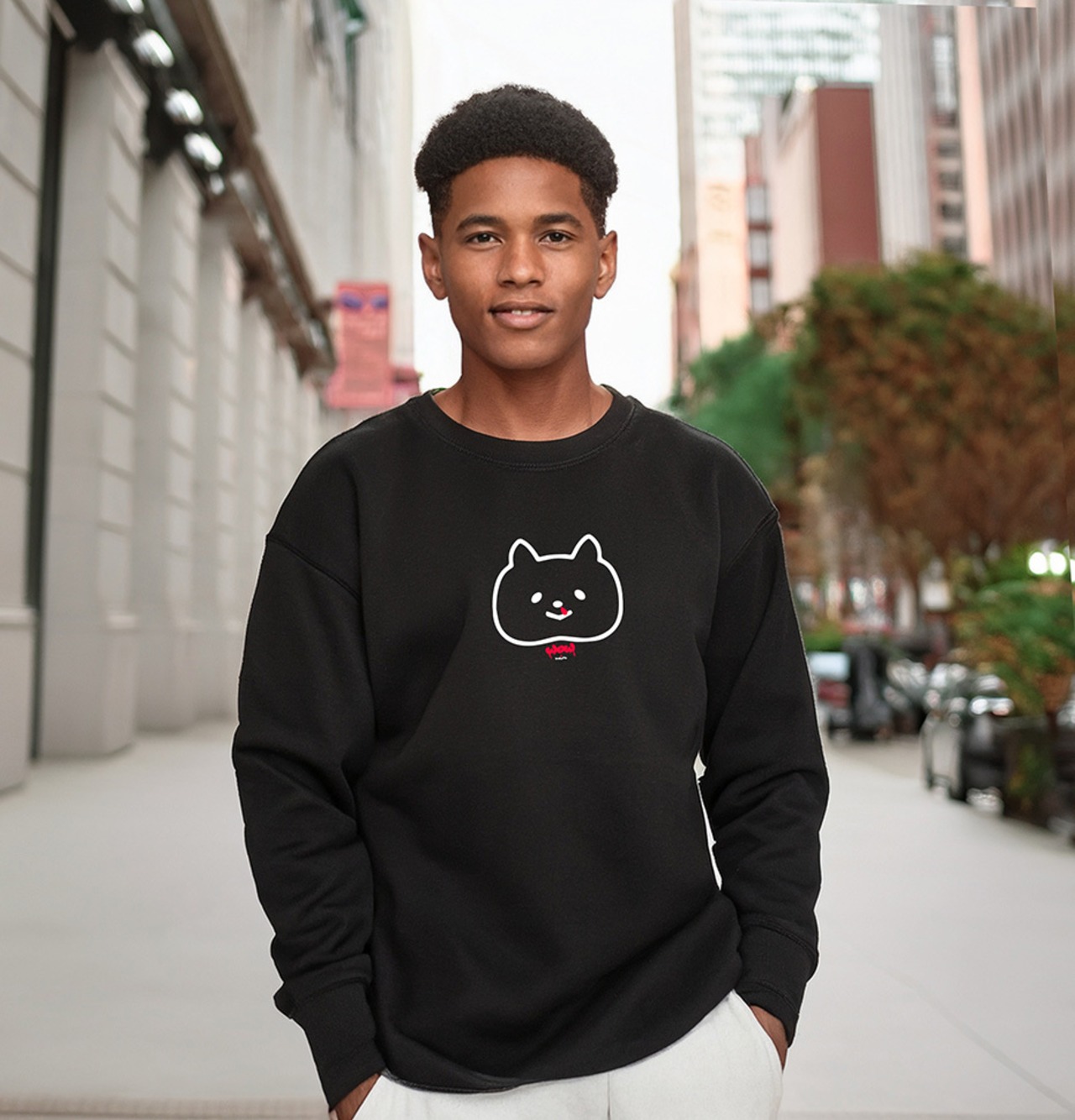 鼻血を垂らした猫ちゃんに「WOW」のデザインがダサクール